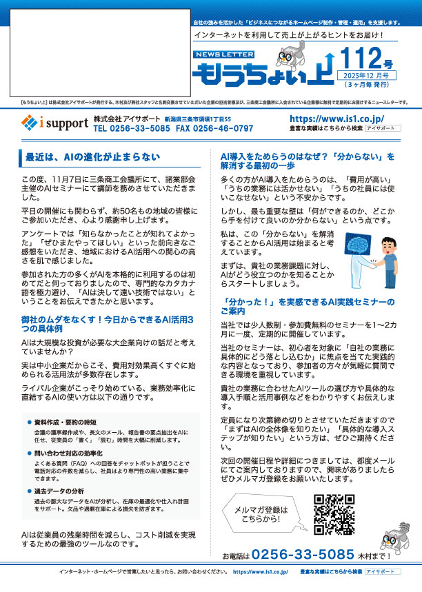 新潟県内(三条市・燕市・長岡市・新潟市等)の企業の皆様、ホームページ制作、Webコンサルティング、アクセス解析、SEO、キーワード広告等はお任せください。